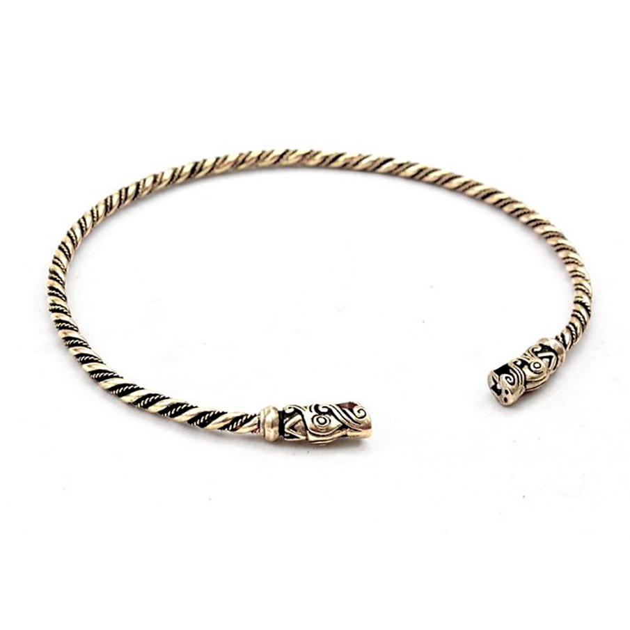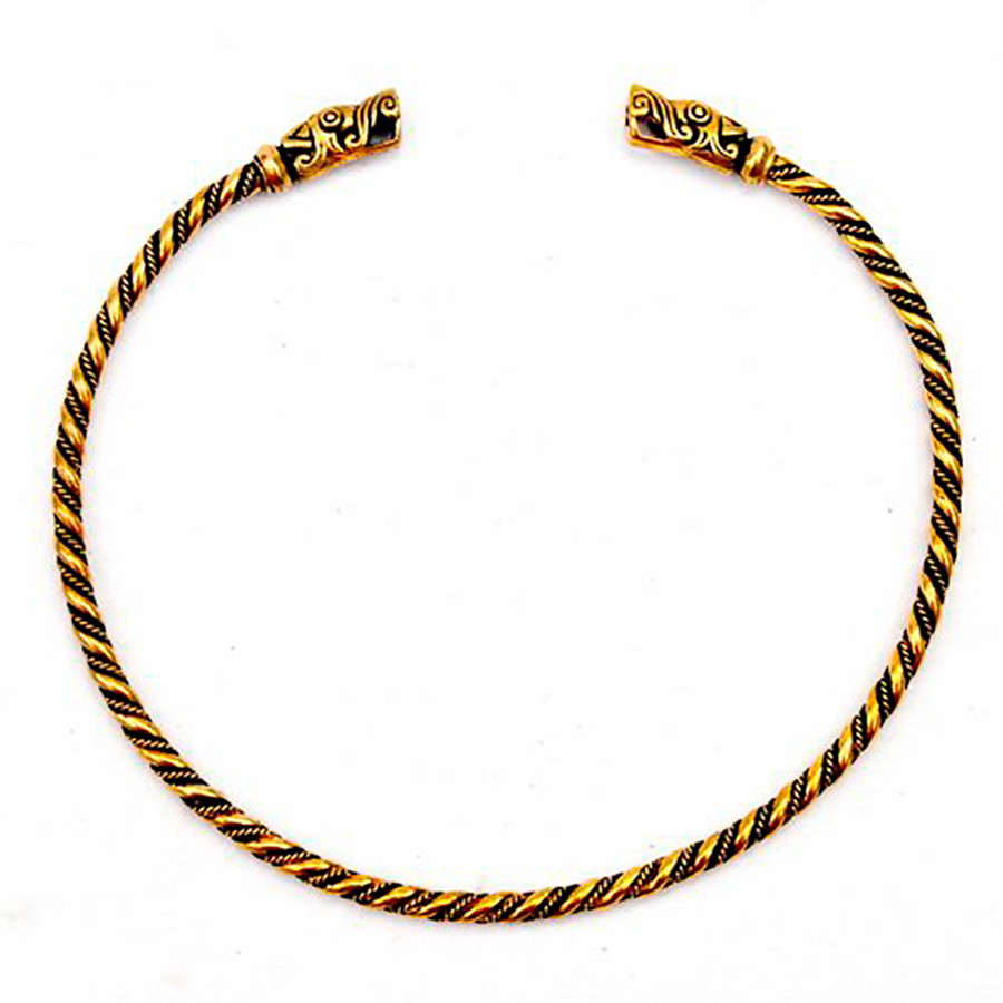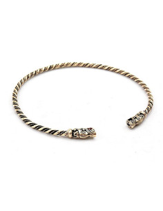 The Torque Viking Gotland Dragon heads is a historical necklace inspired by Viking models. It is a necklace of several twisted bronze wires that has a design of dragon heads, honoring the fascinating Viking culture. This particular model is a historical replica based on designs found on the Swedish island of Gotland.