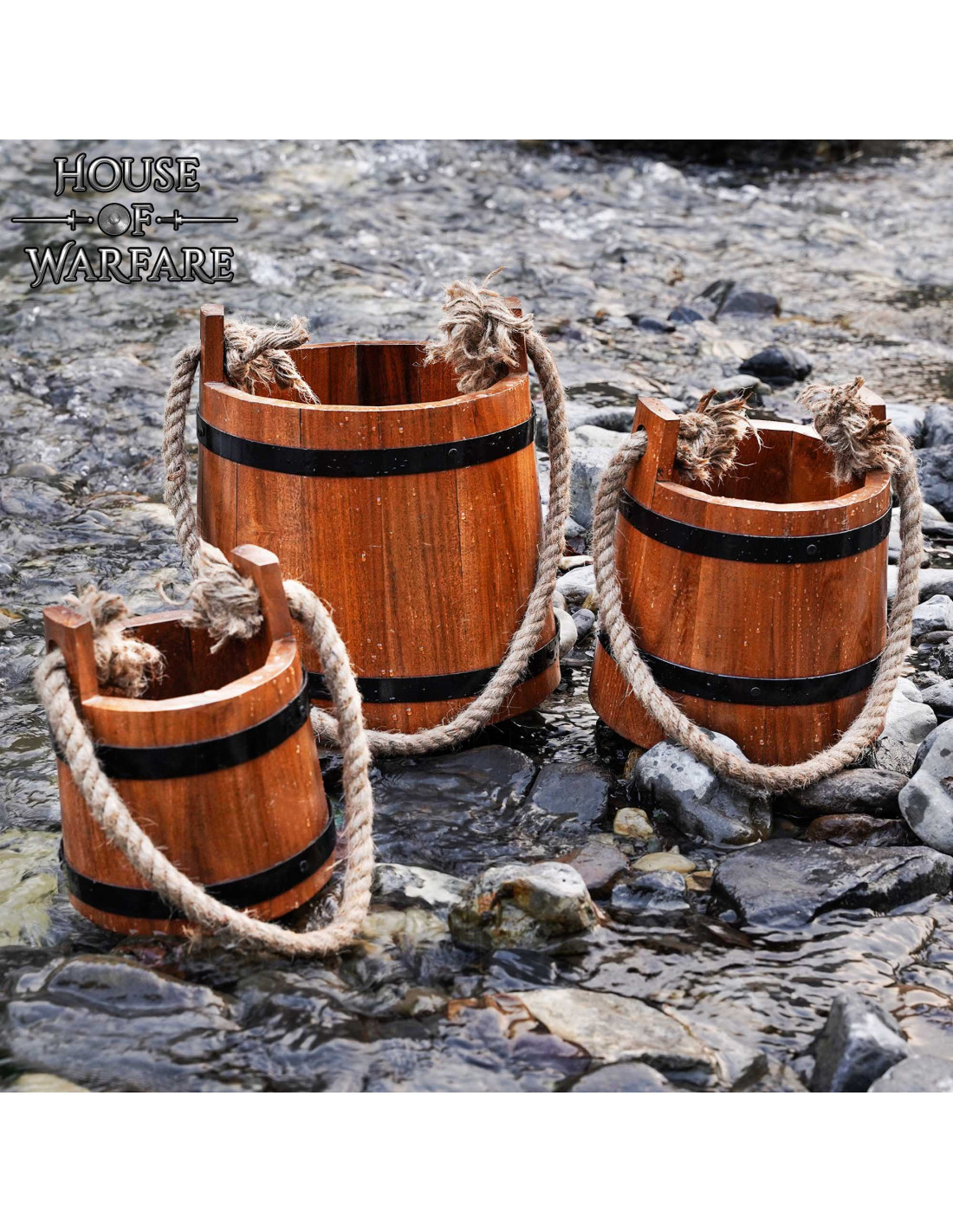 Perfect for decorating patios, creating rustic-style corners, using at Renaissance fairs, or as an element in theatrical productions and photo shoots. If you plan to buy the rustic wooden water bucket, various sizes, you'll find a blend of functionality and stage presence.