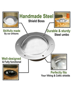 Whether you want to add it to your Viking, Medieval or even Celtic shields, this gleaming steel umbo is sure to make it a true shield from the Middle Ages.