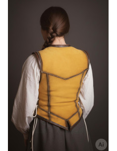 Its combination of materials and practical design make this piece a reliable choice for those who value handcrafted appearance without sacrificing comfort. When you choose to buy a Short medieval leather jacket for women, yellow suede, you're selecting a garment designed to last and impress.