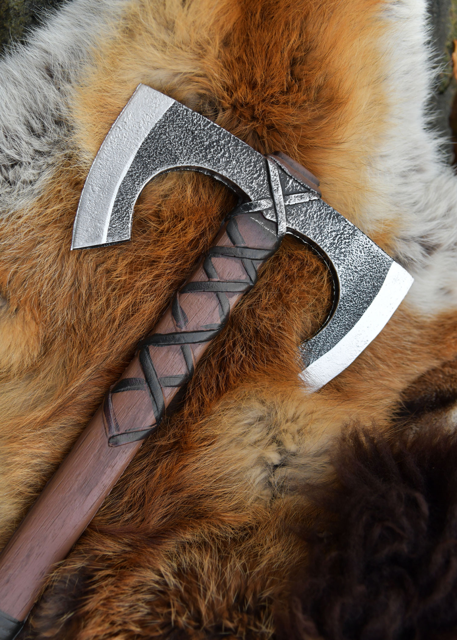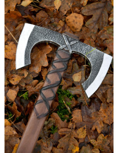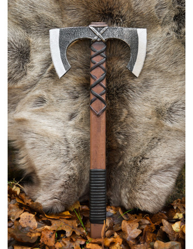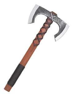 Jorvak is not just an accessory; it is your adventure companion: its rustic aesthetic and subtle detailing simulate a life of battles, enhancing any character from a hardened mercenary to a shield maiden filled with determination. If you are interested in purchasing the Jorvak Double Viking Axe for LARP, you will find it designed to integrate seamlessly with costumes and scenes without losing credibility.