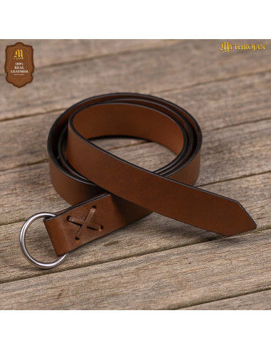 Genuine smooth-finished leather gains character with use, offering a natural patina that enhances every knot and fold while maintaining the durability needed for everyday wear. The chrome metallic ring closure ensures a quick and reliable fit, and the elongated tail allows for tying, wrapping, or adjusting freely to achieve a personal and authentic style. Thanks to the beveled tip and cross-stitching finish, the belt showcases a handcrafted detail that reinforces its historical appearance without complications.