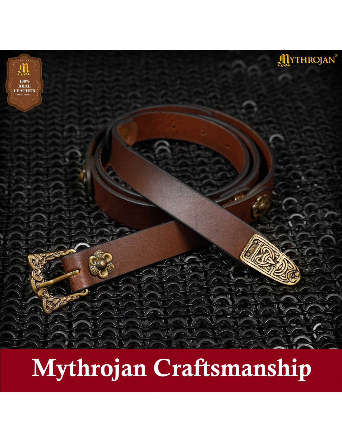 If you are thinking about buying the Viking Leather Belt in brown with brass decorative buckle, you will find in it a versatile, durably appearing piece, designed to attract looks and conversations. Add character to your wardrobe with an accessory that combines tradition and modern presence.