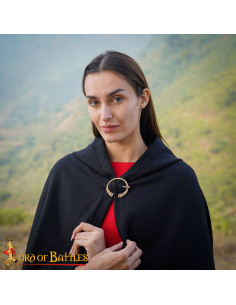 Discover a piece that combines history, style, and symbolism in every detail. This Viking brooch in braided bronze and Nordic knots is much more than an accessory: it is a tribute to the ancient tradition of northern warriors. With an aged, handcrafted finish, its penannular design featuring intricate knot and spiral motifs represents unity, strength, and the eternal cycles of life according to Nordic worldview.