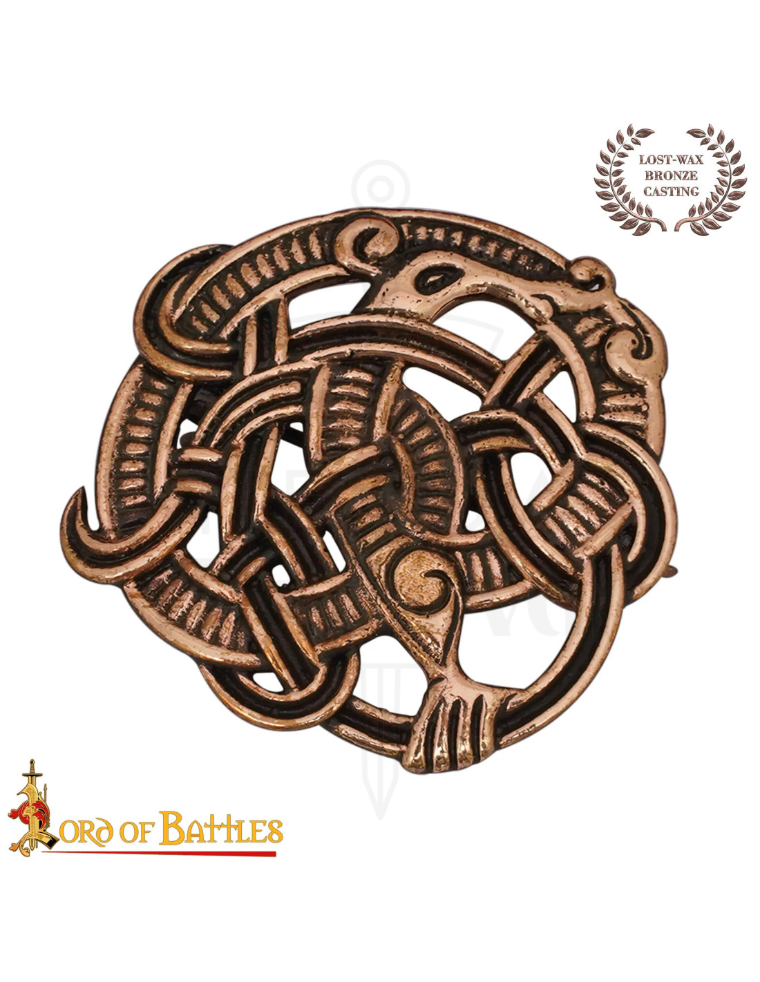 This brooch is born from an ancient tradition, created using the lost wax technique, ensuring that each piece is unique and preserves fine details that recreate motifs from the 9th to the 11th centuries. The intertwined animal figures and engraved lines provide a vivid texture, while the shine and patinated areas enhance the reliefs, offering an aged appearance that tells stories in every reflection.