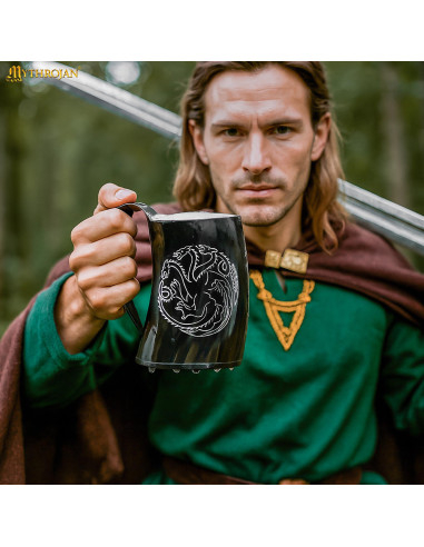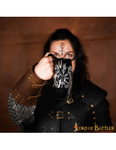 Viking in spirit and attractive in appearance, our Viking drinking mug, engraved Vegvisir surrounded by the fierce dragon Jörmungandr. Before you start thinking about buying a bag for this pitcher, we've got you covered! It comes with a strong cotton canvas bag, ensuring it lasts longer.
