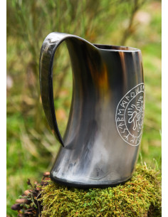 Immerse yourself in authentic Viking tradition with our Sleipnir beer mug, carefully handcrafted from real cattle horn. This stunning piece features an engraving of Odin's legendary eight-legged horse, Sleipnir, making it a unique work of art and a true tribute to Norse mythology.