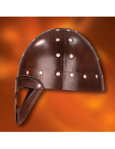 Leave behind insecurity, feel how protection and style unite in a single object. The Vendel Viking helmet becomes your personal shield, transforming every outing into a statement of strength and history. When you seek to stand out, you don't just want to look good, you want to feel invincible. Windlass Steel Crafts' choice guarantees an accessory that blends sturdiness and authenticity in every rivet, carefully placed by hand. This helmet, with its construction in dark brown leather, not only shapes your look but also prepares you for any challenge during reenactments, events, or simply to impress at every encounter. Its lightweight design lightens every move, giving you the freedom to conquer your day with confidence, without discomfort. The one-size-fits-all, adjustable with an additional liner (not included), adapts to you, ensuring comfort without sacrificing style. Preparing yourself with the Vendel helmet is not just an aesthetic choice, but an act of self-confidence and power amid your everyday adventures and historical passions.