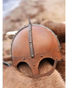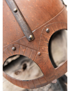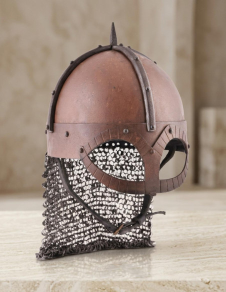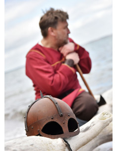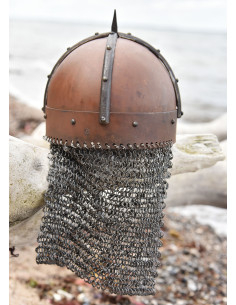 This helmet, inspired by the resilience and bravery of ancient Norse warriors, allows you to channel that untamable energy. Its rustic, aged finish not only offers authenticity but also connects you with a past of honor and courage, raising your confidence to a new dimension. The appreciation for history and symbolism merges with effective protection, making every move confident and decisive. You're no longer just yourself; you're part of that warrior legend, a protagonist in your own story. Every detail, from the leather straps to the padded lining, has been designed so you feel comfortable, prepared, unstoppable. The Viking Helmet Gjermundbu with chainmail not only complements your style but turns every challenge into an opportunity to show who you truly are.