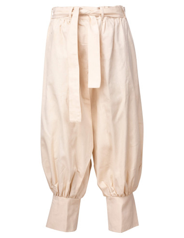 The ankle cuffs with drawstrings allow for perfect adjustments, achieving a compact and versatile style, ideal for both daily activities and events with a more creative character. The fabric, lightweight and comfortable in appearance, allows you to move freely without sacrificing style.