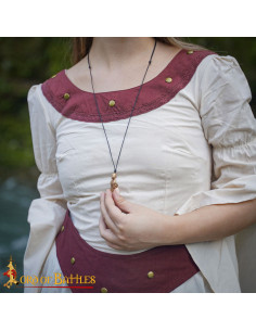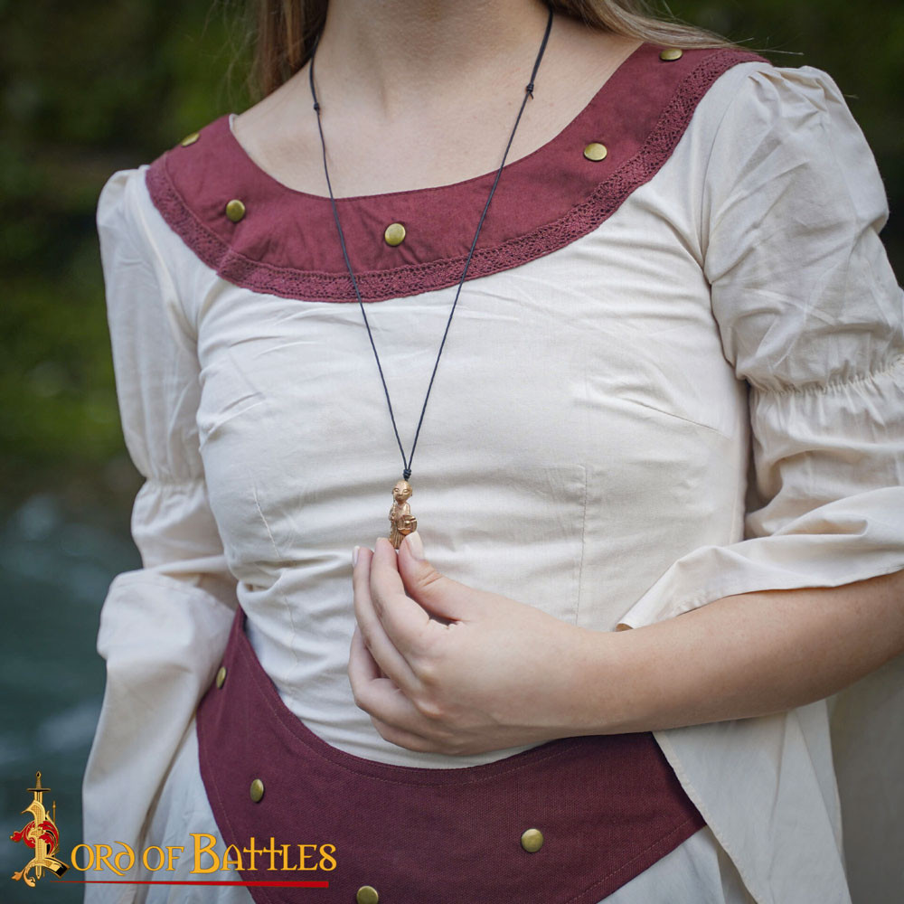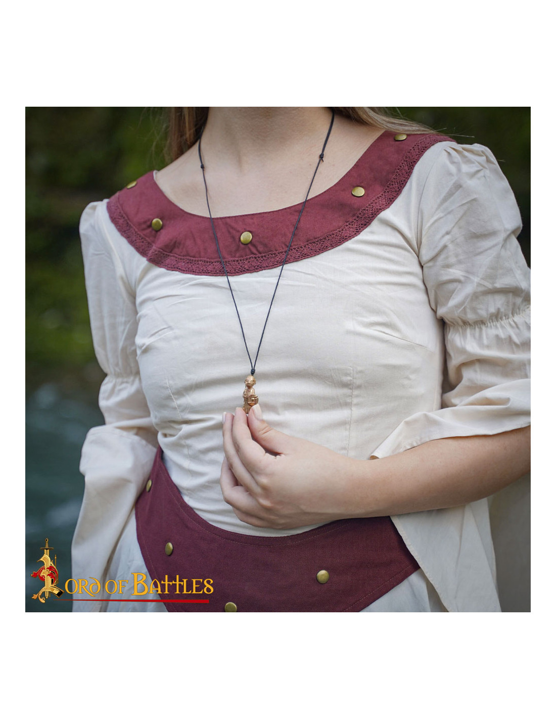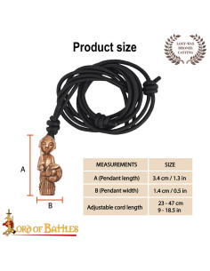 It is suspended from a black cord, reinforcing its rustic and medieval style. This material offers comfort and flexibility so you can wear it both at themed events and in your daily life. Additionally, its compact design ensures that it is not overly extravagant and is easy to pair with different styles.