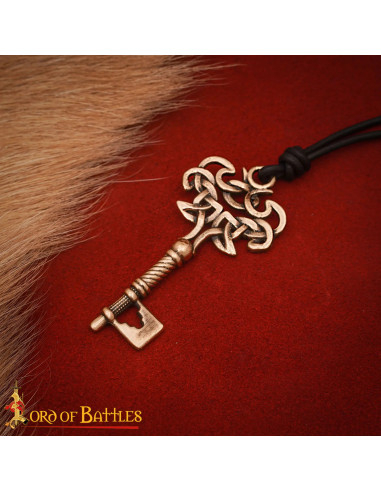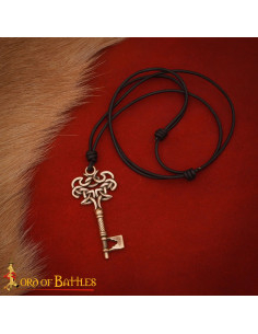 Inspired by the keys found in Viking sites such as Birka and Hedeby, this pendant evokes the responsibility and status that, in Norse culture, marked the management of the home and resources. The top features an intricate knotwork that suggests protection and unity, the handle displays a spiral twist that adds visual dynamism, and the tip recreates the classic key shape with a cut-out section that adds historical personality to the design.