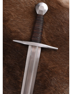 Viking sword with scabbard for practice, S. XI. The battle-ready one-handed sword offered here is an interpretation of an 11th-century Viking sword. This type of sword (Oakeshott Type X) represents the transition from the Viking sword to the medieval or knightly sword, and the many surviving examples testify to its popularity both in the late Viking Age and in the High Middle Ages.