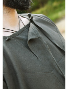 Our cotton tunic is a detailed reconstruction of the medieval Viborg Tunic. We have paid special attention to the correct arrangement of the seams, the details and the appropriate proportions. To improve aesthetics, we have slightly lengthened the overall length of the torso and sleeves. This long-sleeved tunic ends at the thigh, and can be worn as both an outer and inner tunic. The fabric (100% cotton) is medium weight and has a double layer on the torso.