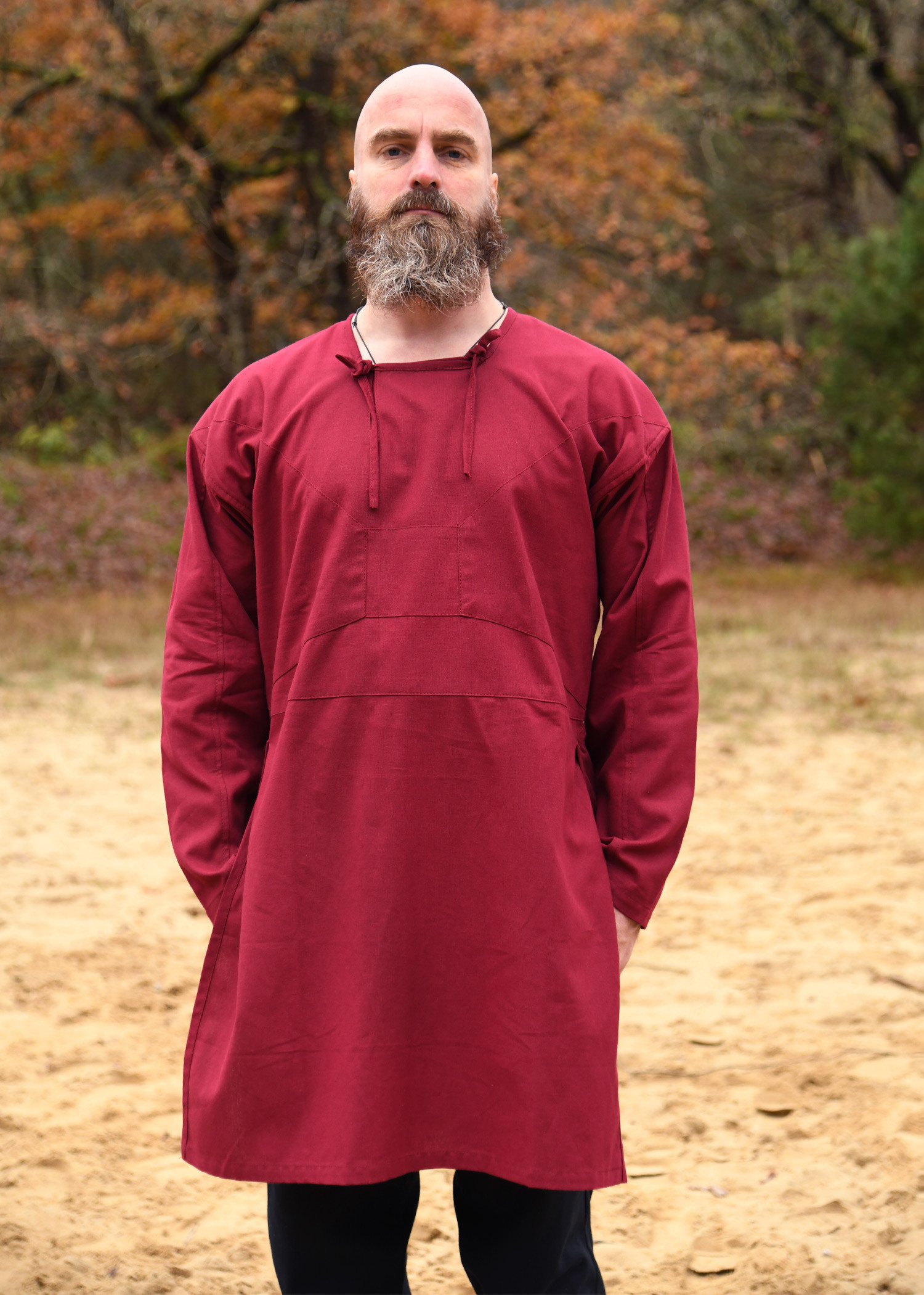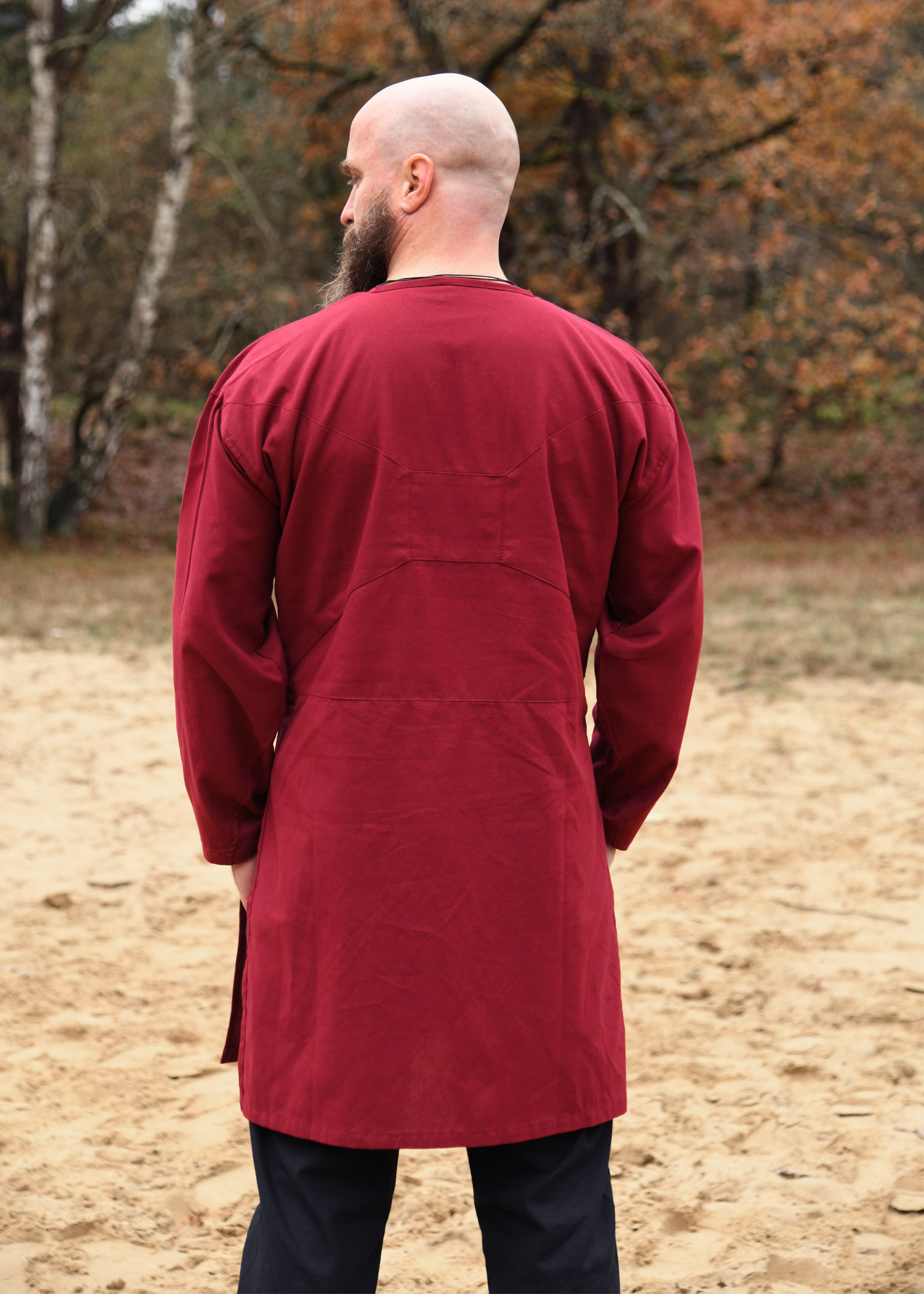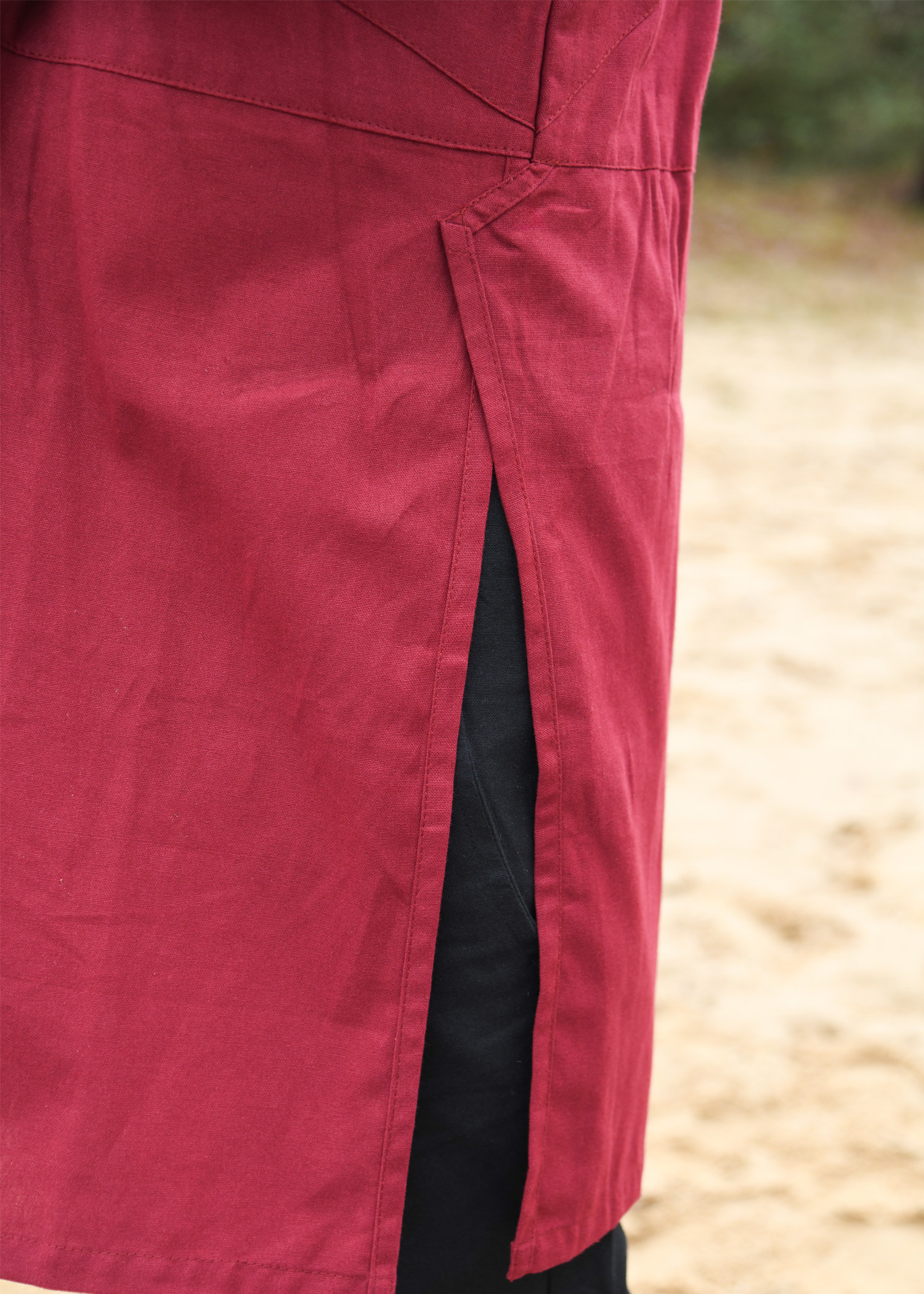 Made of 100% cotton, it combines quality and authenticity, ideal for historical reenactments, medieval fairs, or even to stand out at themed events. Its wine red tone adds character and warmth, perfect for enhancing your presence. This garment is not just clothing; it is a portal to another era.
