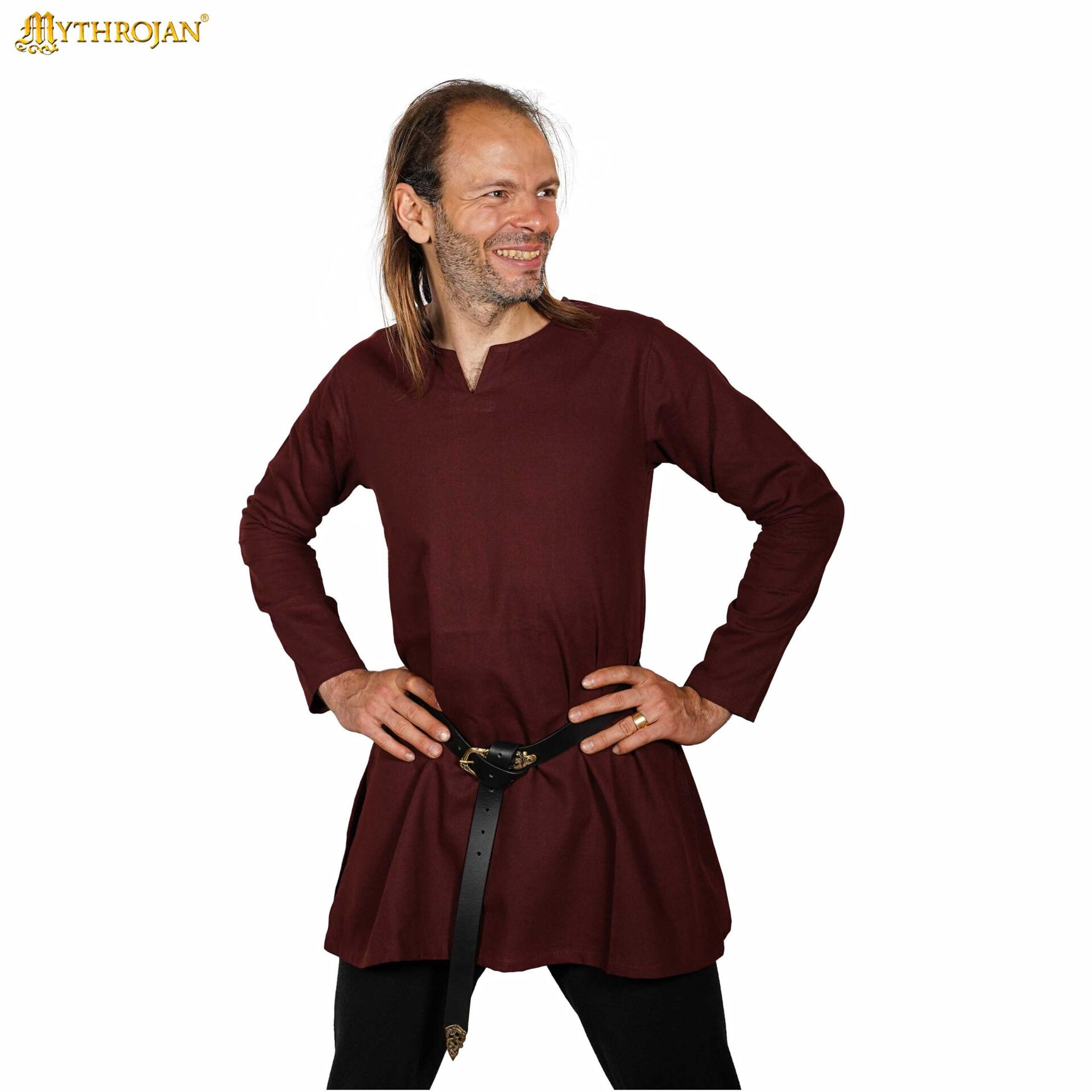 Ready to look like an authentic medieval knight or adventurer? This brown cotton tunic model Raider is your perfect ally for any epic occasion, whether at reenactment events, cosplay, themed weddings, or SCA and LARP tournaments. Made from durable 100% cotton, it combines longevity and comfort in one package, ideal for facing the most intense battles or sharing memorable moments in the meadhall.