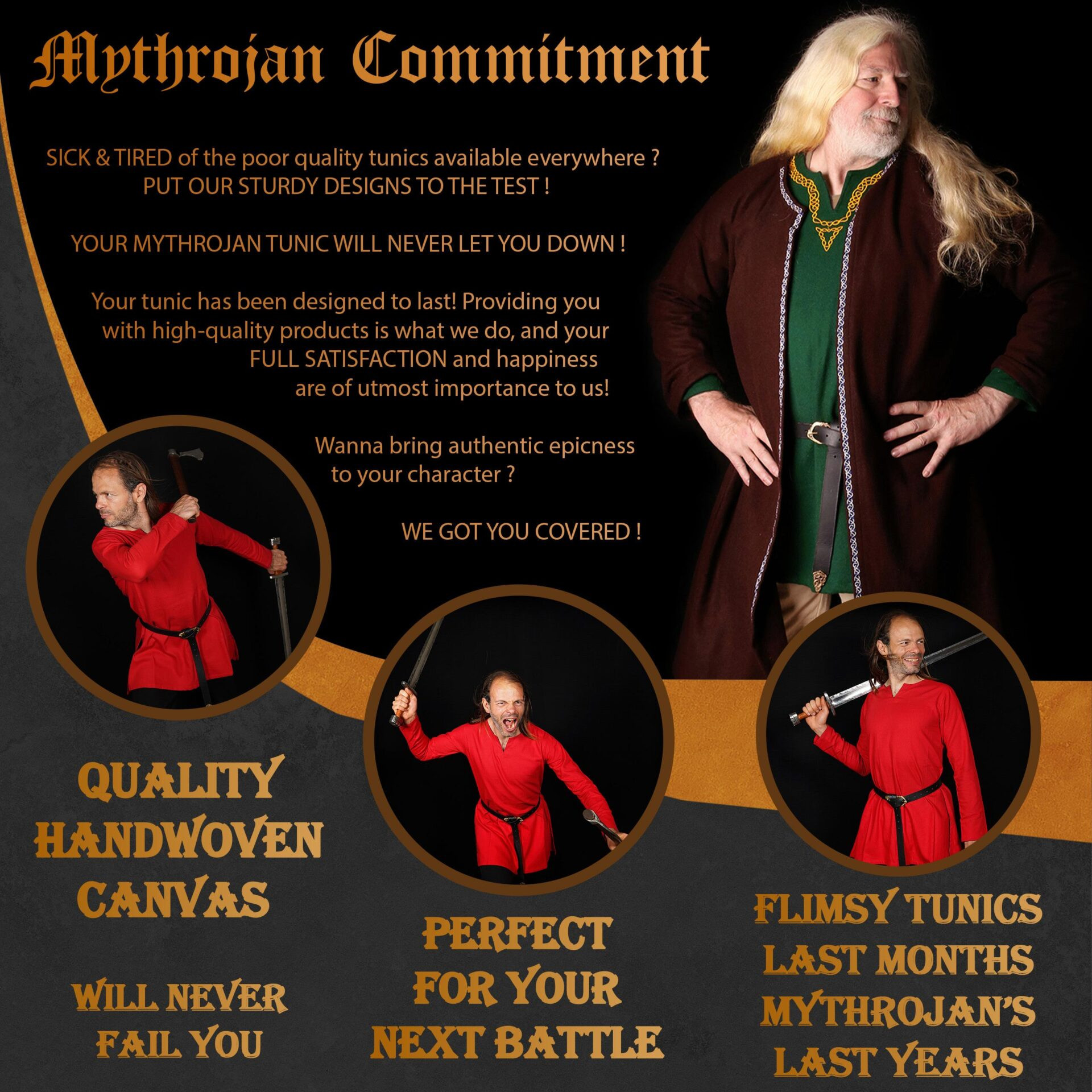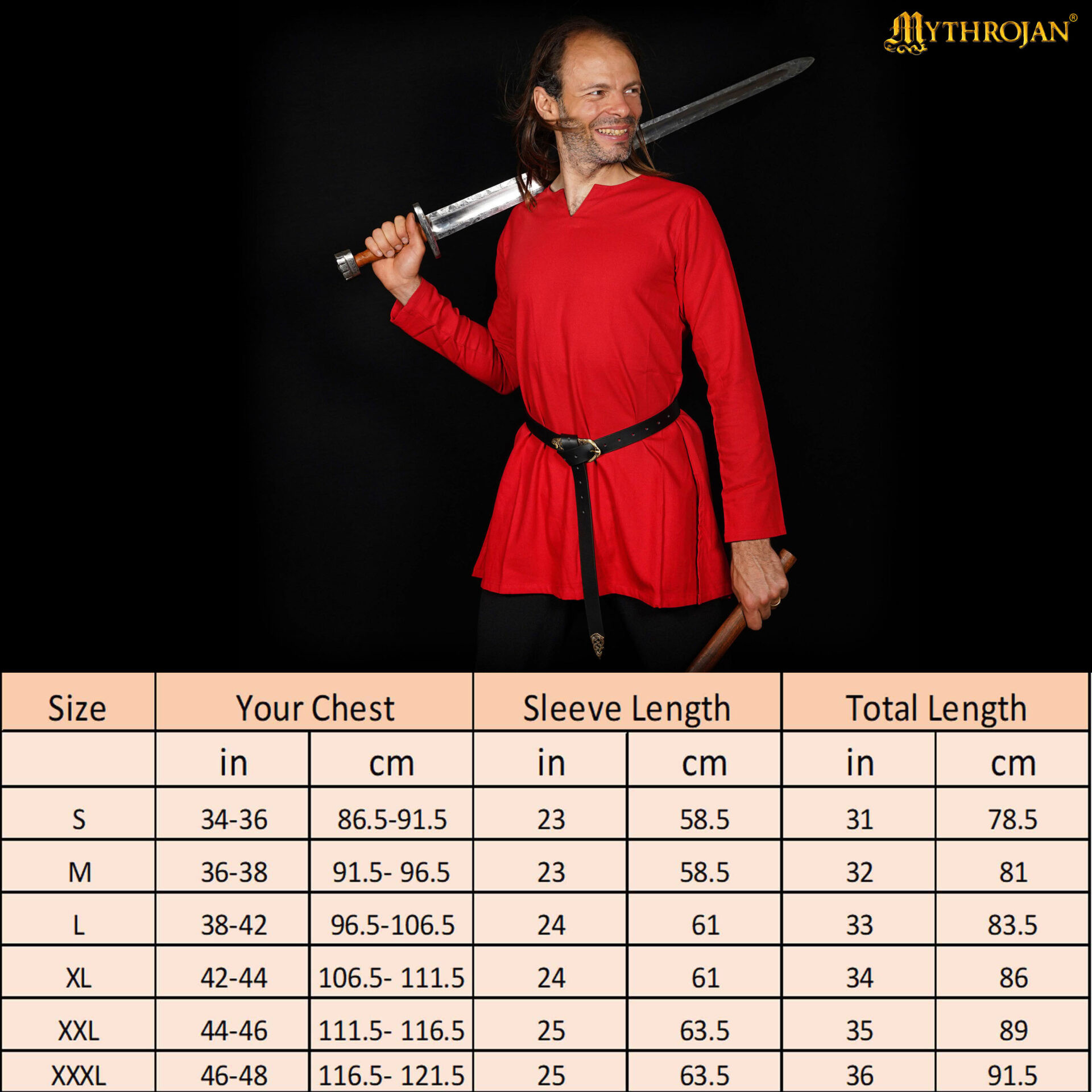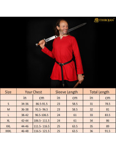 Designed to fit perfectly for knights, squires, and young adventurers, its cut is easy to put on and take off, making it simple to prepare for any event. Keep in mind that sizes run a bit smaller, so check the size chart and if in doubt, choose a larger size! The versatility of this tunic makes it ideal for medieval events, historical reenactments, cosplay, themed weddings, or LARP, accompanying you from the battlefield camp to your lord's banquet hall.