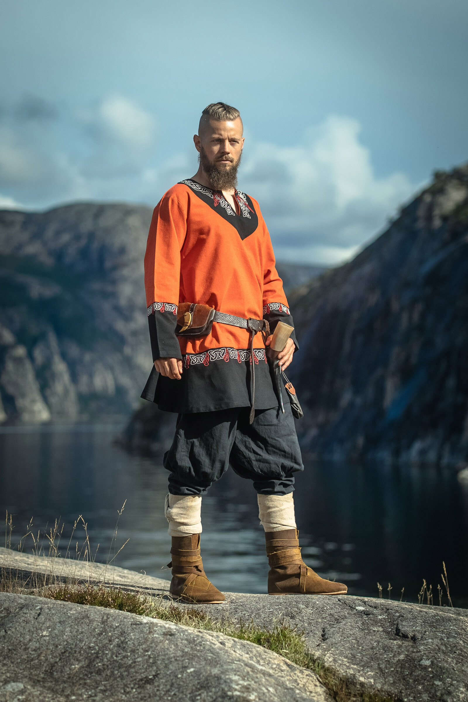 If you're looking for a piece with history and strong presence, buying the Short Viking Tunic Freydis model, orange color lets you bring home a garment that combines art, comfort, and versatility, perfect both for themed events and for those who want to stand out with everyday style.