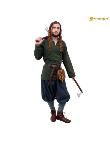 This is not just a garment; it is the vehicle to become that warrior you've always dreamed of being, with the freedom of movement needed for a true adventure. Made from 100% cotton, it offers a feel of comfort that accompanies you every step of the way, while the cut, reminiscent of ancient Northern European fashion, makes you look authentic and confident. Pair it with a leather belt, and you'll have the perfect look that connects you with your roots and pushes you forward. It’s the chance to feel alive, to relive legendary eras, and leave a mark wherever you go. Your story deserves to start now, with the Viking Tunic Ove, the symbol of your unyielding spirit and thirst for conquest.