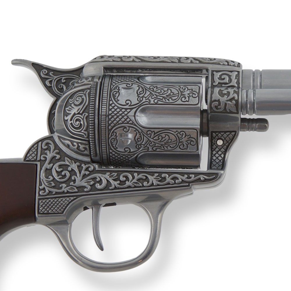 Thanks to its meticulously crafted design, with precise engravings and wooden grips that add elegance and firmness, this collectible replica becomes more than a decorative piece. It is your vehicle to connect with the legend, to feel part of a time where bravery, style, and presence were measured in a single glance. Every time you look at it, you'll remember that history isn't only lived by paper characters or scenes on the screen, but that you too can hold a piece of that story in your hands and show who you truly are.