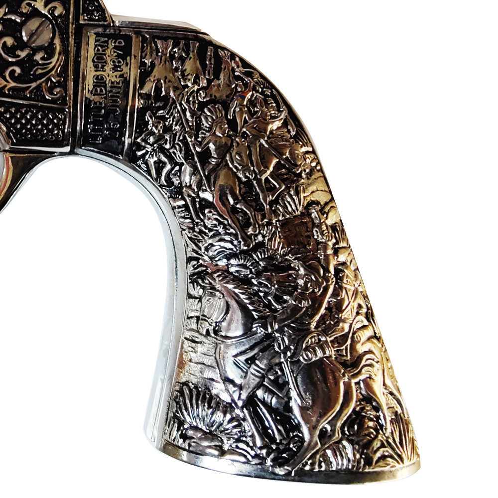 | How does it transform your space into a sanctuary of history and authority? | With its detailed engraving and metallic finish, this revolver becomes the center of attention, elevating your collection's status to a level of distinction that only a few can achieve. |