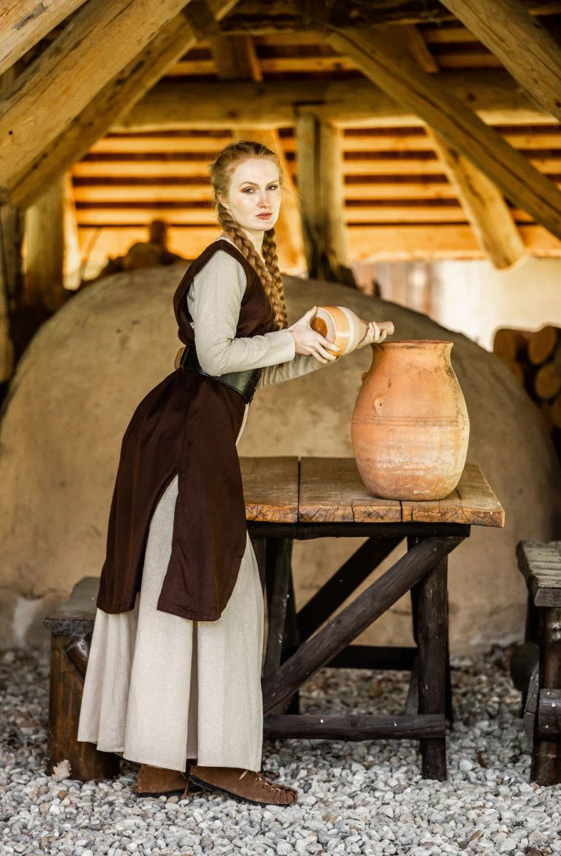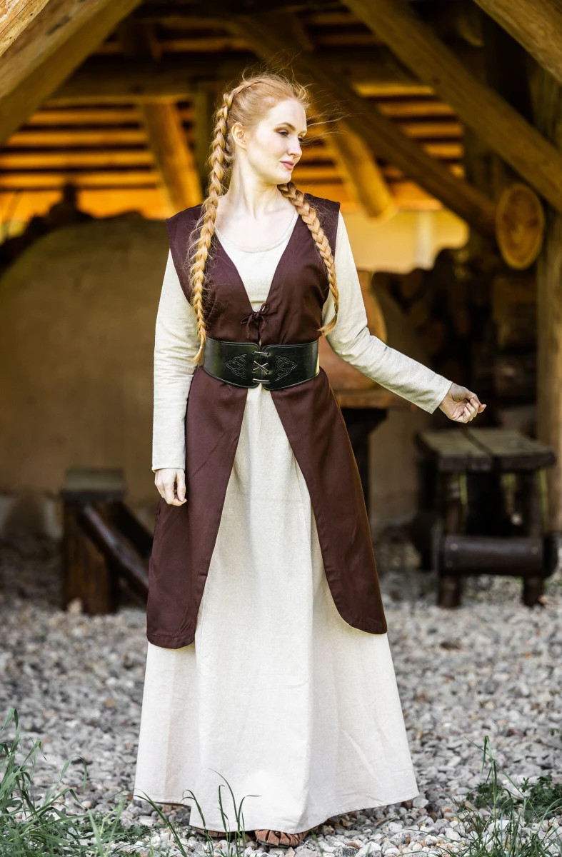 Whether you participate in theatrical performances, medieval festivals or simply want to add a touch of charm and distinction to your wardrobe, the Brisela surcoat in brown is the perfect choice. Wake up your medieval spirit and captivate everyone with your unique style!