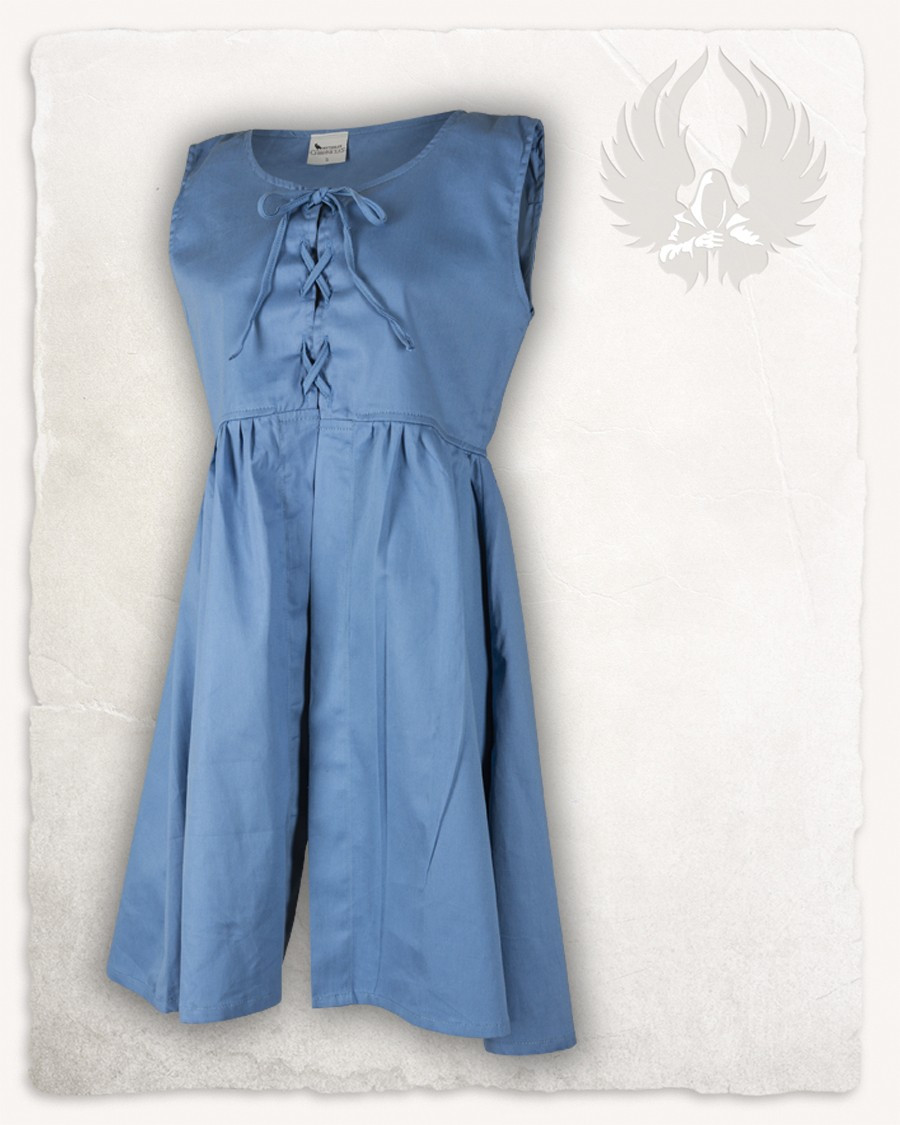 Do you like medieval fashion? Then you can't miss this beautiful medieval surcoat -Clara- in blue. This sleeveless garment is open at the front and closes with a drawstring at the chest. Made of resistant canvas, it is a comfortable and durable piece that will last you for a long time.