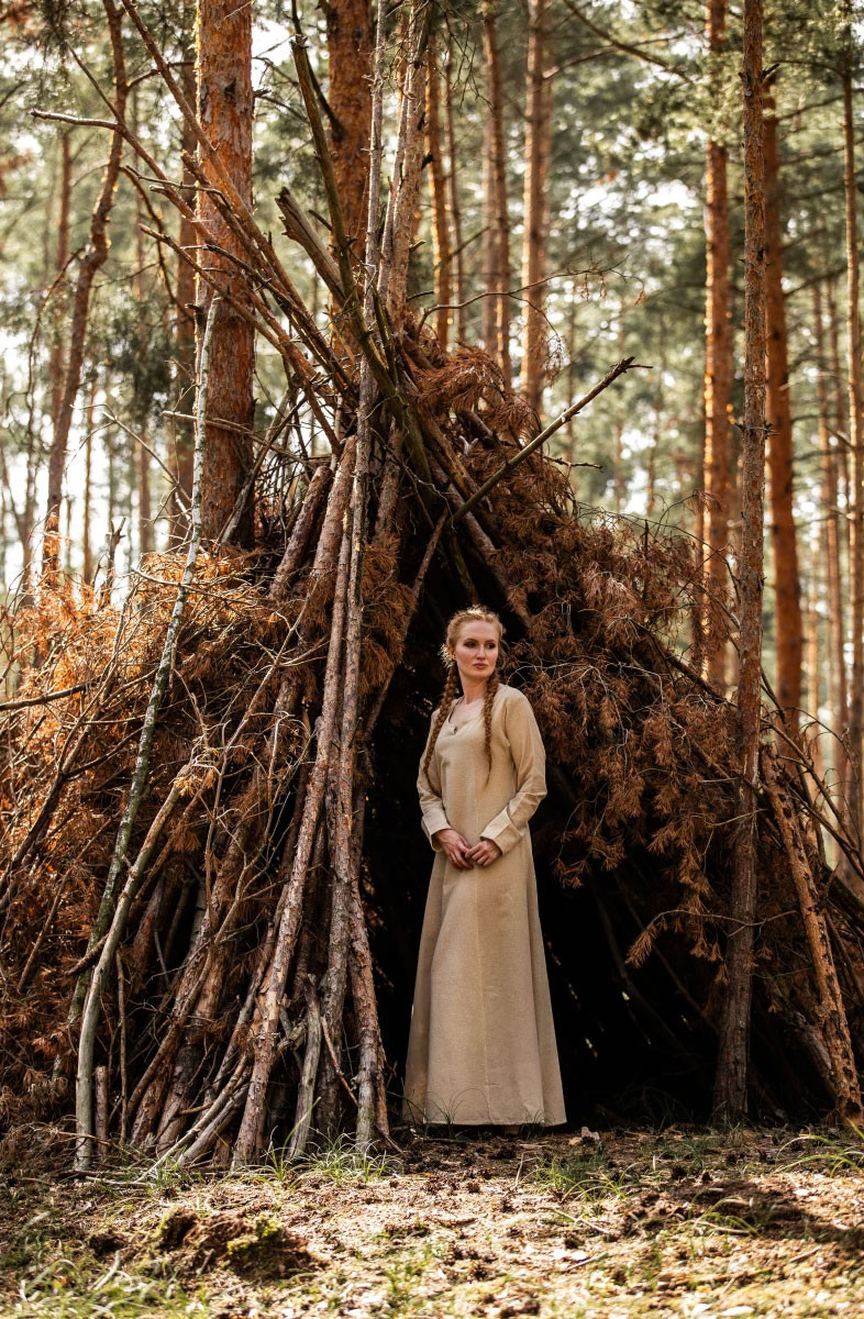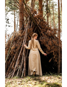 Viking woman dress model Lina, a unique and original garment that will transport you to the Viking age. This dress is made of 100% natural white cotton, which gives it great softness and comfort when wearing it. Its long design and straight-cut sleeves give it an authentic and elegant touch.